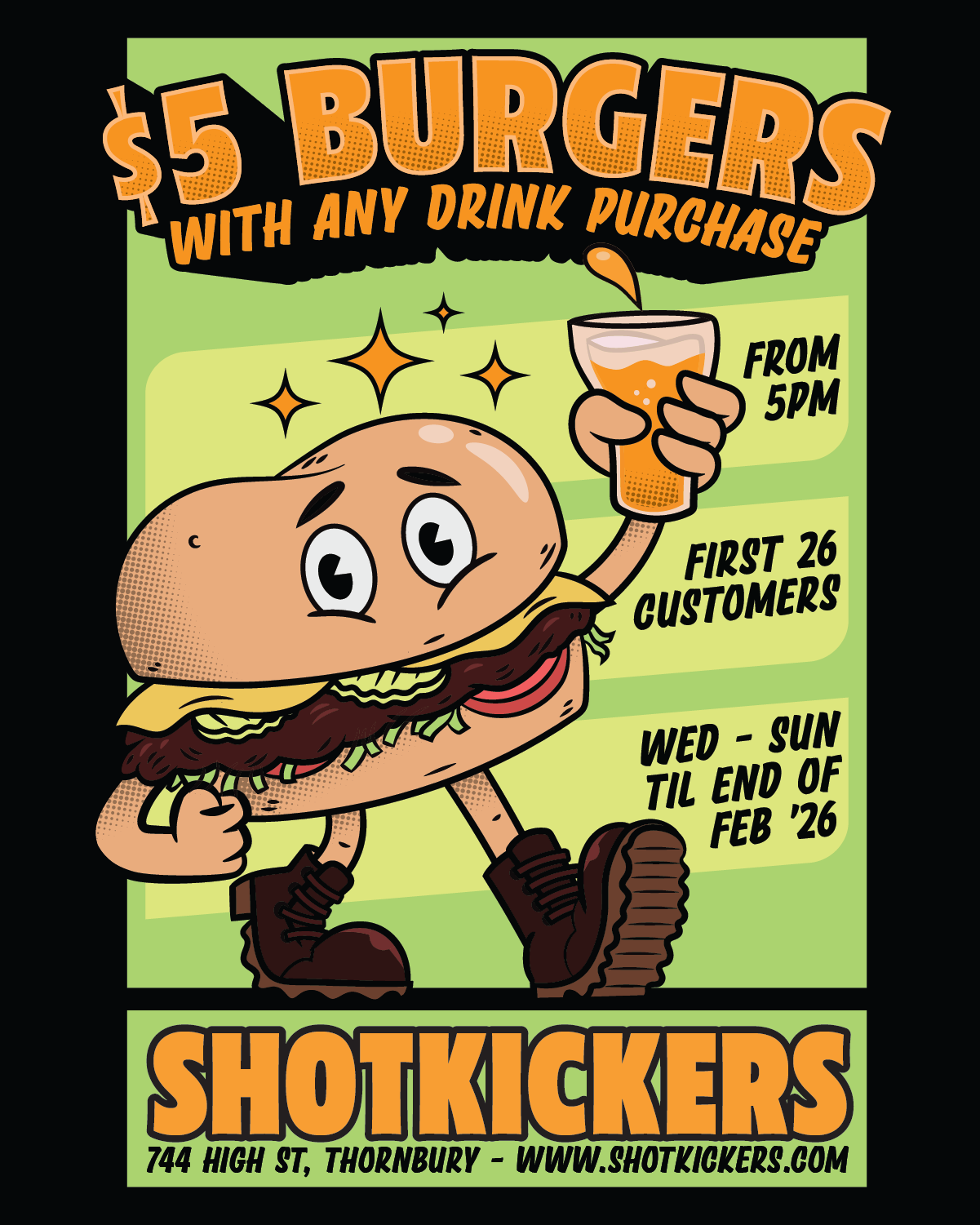 Burgers, bites and live music nights! We're kicking it live in Thornbury with the best up and coming bands from round the block and beyond!
